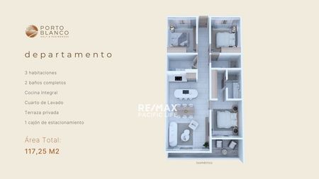 3 Habitaciones, 3.5 baños, Cocina Integral, Cuarto de Lavado, Bodega, Patio, Roof con Jacuzzi, 2 cajones de estacionamiento.