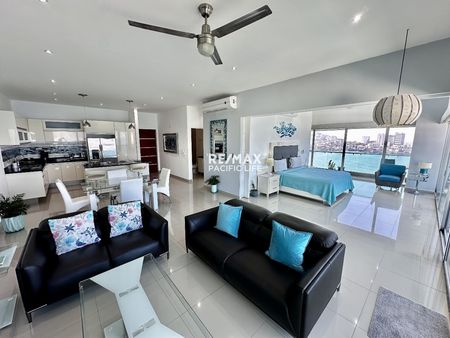 Este espectacular condominio se encuentra ubicado en el malecón de Mazatlán, en el piso 8 de la Torre M, ofreciendo una de las vistas más privilegiadas de la ciudad. Su ubicación en esquina permite disfrutar de una panorámica impresionante que abarca el vasto océano Pacífico, las icónicas Tres Islas, y la encantadora zona del centro histórico. El condominio cuenta con dos amplias recámaras y dos baños completos. La recámara principal es un verdadero paraíso, con una vista inigualable al mar y acceso al balcón que se extiende hasta la sala de estar. Este espacio ha sido diseñado con versatilidad en mente, ya que la recámara principal puede integrarse con la sala para crear un área social más amplia, o bien mantenerse como un espacio privado según las necesidades. La recámara secundaria, perfecta para visitas, también goza de una vista espectacular al mar y acceso al mismo balcón. La sala, con grandes ventanales, está bañada de luz natural y conectada al balcón, donde se puede disfrutar de las puestas de sol más inolvidables que Mazatlán tiene para ofrecer. Este rincón de la ciudad combina el lujo y el confort, con acabados modernos y una distribución ideal para aprovechar cada espacio. La torre donde se encuentra el condominio cuenta con amenidades exclusivas, como un gimnasio completamente equipado, una alberca con vista al mar para relajarse, y un elevador para mayor comodidad. Además, su ubicación es excepcional: al estar en el malecón, tienes acceso directo a kilómetros de playa, restaurantes, y entretenimiento, mientras que el centro histórico está a solo unos pasos, ofreciendo lo mejor de ambos mundos. Este condominio de esquina es una joya rara en el mercado inmobiliario de Mazatlán, ideal para quienes buscan una combinación perfecta de ubicación, comodidad, y vistas impresionantes. Es una oportunidad que realmente vale la pena considerar.