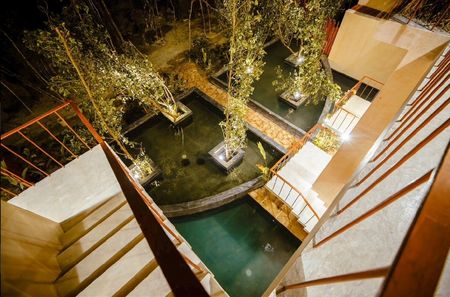 Déjate guiar a través de las fuentes místicas que desembocan en las albercas asemejando los cenotes de la zona, las entradas al nuevo mundo.