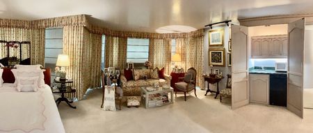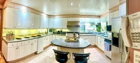 En la comodidad de un solo piso encontramos: Recibidor, sala, comedor, cocina, desayunador, sala de tv. Family, sala familiar, área de bar y biblioteca. Cocina, lavandería, cto servicio, dos alacenas, segunda lavandería con lavadero, closets , conmutador para 4 líneas, 3 recamaras con baño y vestidor, recámara principal con sala, y Estacion de café y refrigerador.