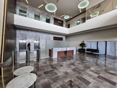 Amenidades de Momentum: lobby, sala de juntas, sala de conferencias, gimnasio, comedor, sauna, vapor y regaderas, terraza en el piso 10.