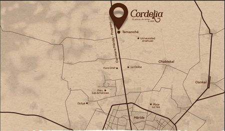 CORDELIA es un desarrollo residencial de 164 lotes premium estratégicamente ubicado al pie de la carretera Mérida-Progreso, a tan solo 7 minutos saliendo del periférico de Mérida y tan solo 12 minutos de la entrada al puerto de Progreso.