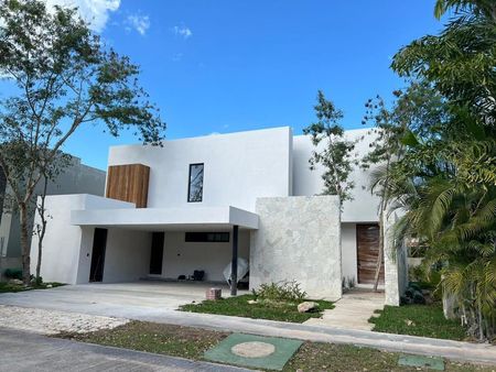 Residencia a estrenar en Yucatán contre club, con acabados de lujo totalmente equipada. Dos niveles. Piscina. En privada con seguridad 24/7