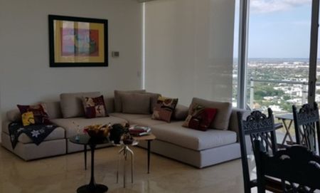 Departamento Renta country towers. Privada residencial con acceso controlado, diseñada con dos torres de departamentos, jardines centrales. Torre Terra, dos departamentos por piso, lobby, sala de espera, acceso al lago, dos elevadores. Piso 23, sala equipada con sofá en escuadra y mesa central, comedor para seis personas, cocina integral abierta, recámara principal con clóset vestidor y baño con cama Queen , recámaras secundarias con clóset vestidor y baño con dos camas matrimoniales, recámara adaptada como sala de TV con clóset vestidor y baño, cuarto de lavado, cuarto de servicio, balcón. 2 lugares de estacionamiento.