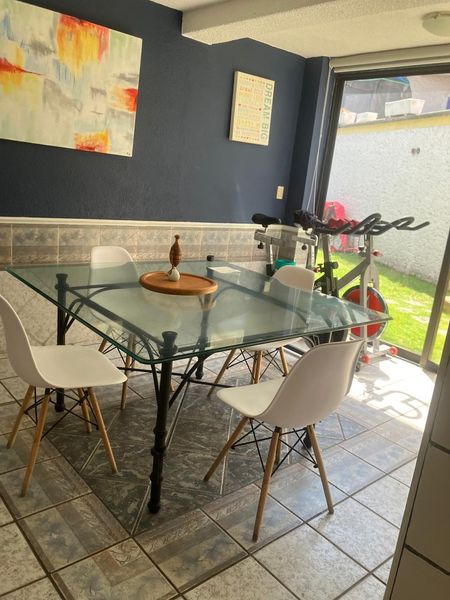 El comedor, ante comedor y cocina integral con isla tienen vista y acceso al jardín. La recámara principal con un amplio vestidor y baño completo con tina. También hay otra recámara amplia con vestidor y su baño completo. Las otras dos recámaras secundarias con closets y cada una con su propio baño. El jardín, a dos pisos, cuenta con asador y baños independientes. ¡Es un espacio donde pasarás increíbles momentos en familia! La casa cuenta con dos y medio baños y cuarto de servicio con baño y lavandería.