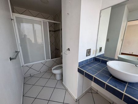 Departamento amplio y muy bien distribuido con 2 recámaras (cada una con su baño completo adentro de la recámara), estudio, y medio baño. Cuenta con cocina equipada, área de lavado y excelentes espacios en sala y comedor.