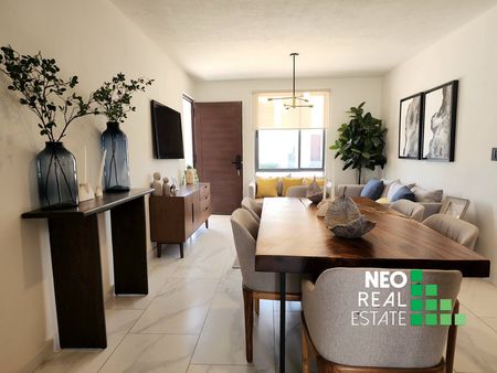 Las amenidades incluyen una alberca con palapa, asadores, juegos infantiles y áreas verdes, creando un ambiente perfecto para toda la familia.