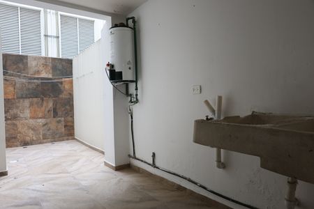 Patio con área de servicio techada.