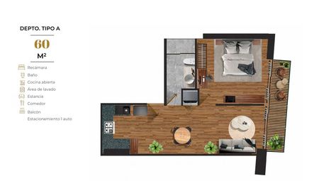 Departamento 60m2 exterior balcon 1 recamara Napoles PreVenta 2026