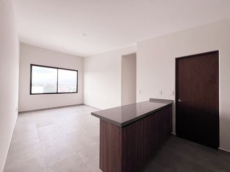 Cocina integral con barra de granito abierta , que se integra a la estancia sala comedor .