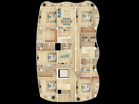 El desarrollo contará con 12 niveles: 1 Nivel de amenidad, 9 niveles para departamentos tipo A y tipo B y 2 niveles para penthouse.