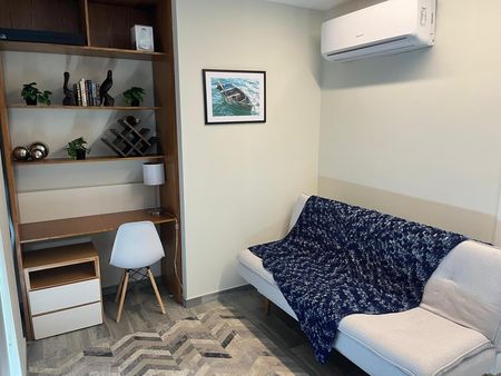 Cuenta con 1 recamara y 1 baño completo, ademas de un espacio que puede considerarse una segunda recamara / estudio.