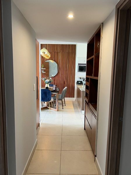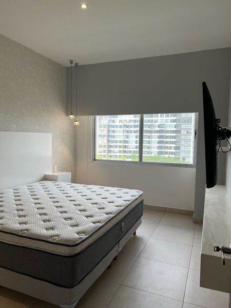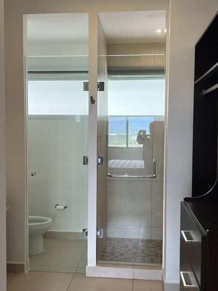 -Habitación principal con cama King size, cortinas tanto black out como micro perforadas, amplio buro empotrado, cabecera y dos buros de noche, tv de 43 plg, clima, closet vestidor (en madera) con baño completo (division baño y regadera)