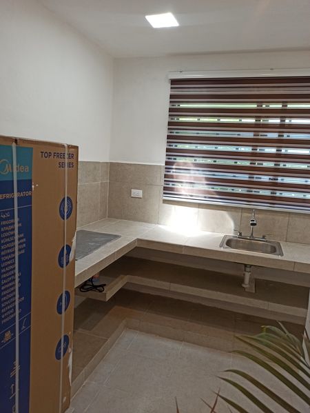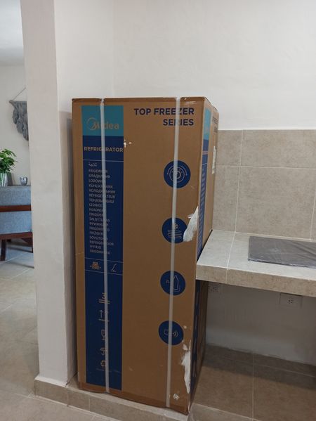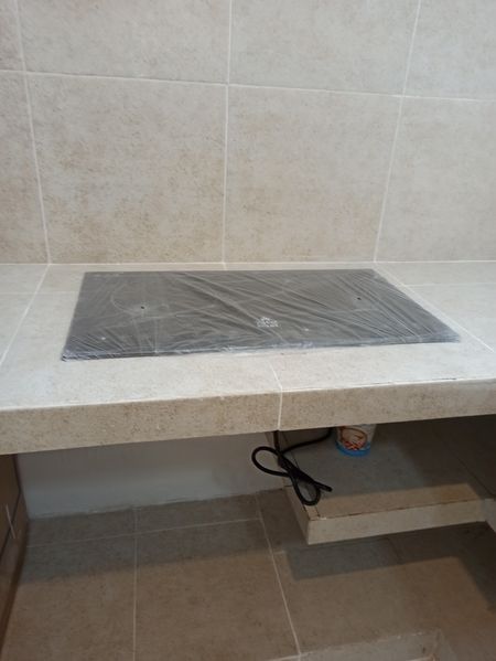 Cocina equipada con refrigerador y parrilla de inducción a estrenar