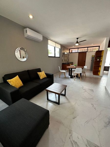 Conjunto de departamentos nuevos completamente amueblados y equipados, ubicados pocos metros de la carretera Mérida - Progreso, con excelente ubicación ya que está muy cerca de Universidad del Mayab, Marista, UVM, centros comerciales como The Harbor, Plaza La Isla, Galerías, supermercados, tiendas departamentales.