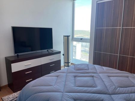 Excellent furnished apartment in the Juriquilla Towers development featuring amenities such as a gym, a restaurant, green areas, a pool, a multipurpose room, a coworking area, 24-hour security, and covered parking.