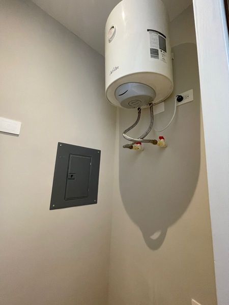 - Cocina vestida con Refrigerador, parrilla de inducción, horno de microondas