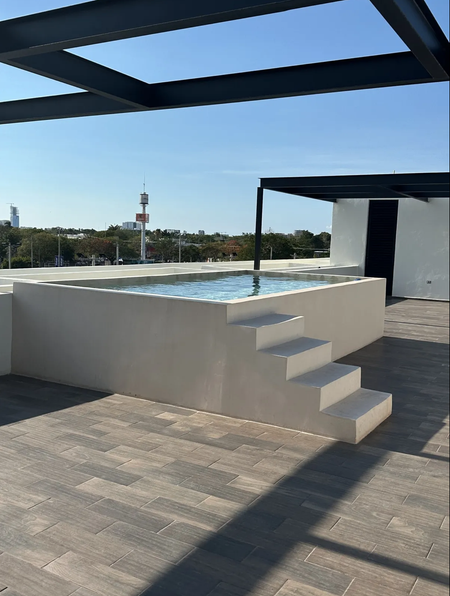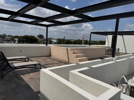Rooftop con amplia terraza, camastros, baños y Piscina