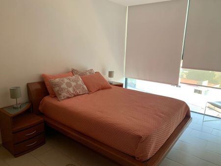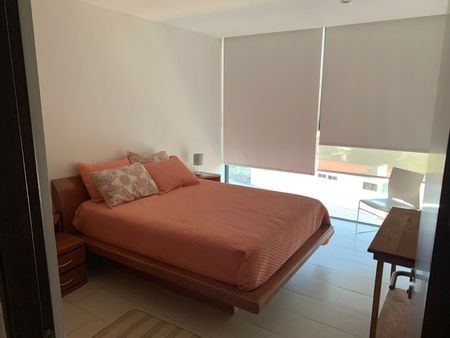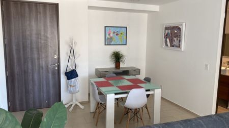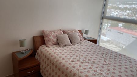 Hermoso departamento en renta amueblado en Latitud. Consta de sala, comedor, terraza con vista hacia la parte interna del complejo , dos recámaras, principal con baño completo, vestidor y terraza pequeña, recámara secundaria con closet, baño completo por fuera, da servicio a visitas, y estudio o sala de TV. Aire acondicionado en recámara principal y estancia. cuarto de lavado, cocina integral. Piso 6. Dos lugares de estacionamiento. INCLUYE internet totalplay fibra óptica y MANTTO. Equipado con vajilla, electrodomésticos, blancos, centro de lavado, etc.