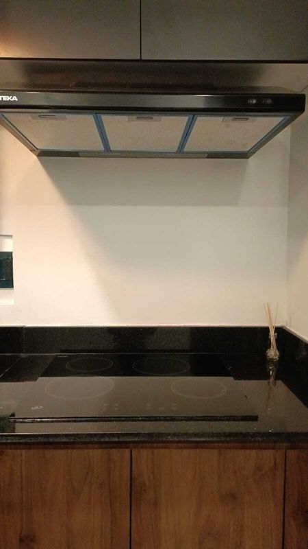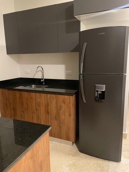 Cocina equipada, parrilla a gas, refrigerador, horno de microondas
