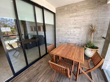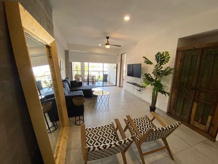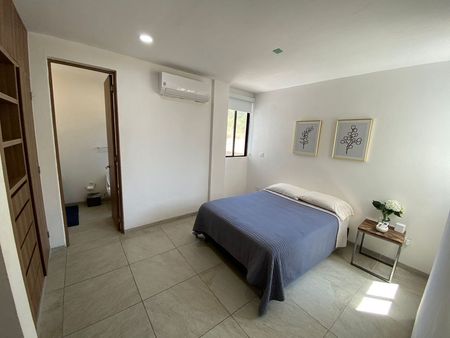 Cuenta con sala comedor, amplia terraza con balcón, cocina integral equipada con barra de granito, cuarto de lavado, medio baño para visitas, 3 recámaras, principal con vestidor, 3 baños completos con canceles y equipados con todos sus accesorios y estacionamiento techado para 2 autos con portón eléctrico.