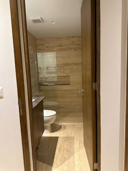Recámara principal con clóset vestidor, baño, aire acondicionado, cortinas black out.