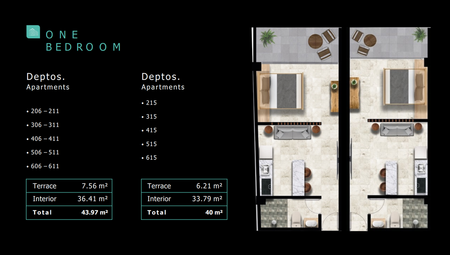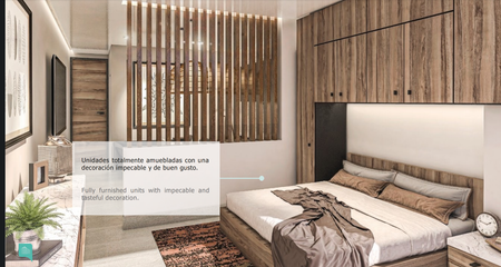 Contamos con unidades de 1 y 2 recámaras con baño, desde 39m2 hasta 76m2, en diferentes formatos, totalmente equipados, amueblados y decorados, se entregan con llave en mano.