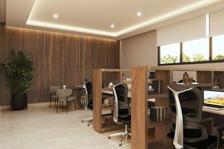Cuenta con estacionamiento, áreas de servicios, áreas verdes, motor lobby, recepción, escaleras de intercomunicación, bar/salón de juegos, pet park, área de juegos infantiles, terrazas exteriores, piscina, gimnasio, cancha de pádel, módulo de baños.