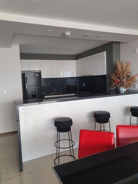 El departamento consta de 3 habitaciones (principal con vestidor y baño), 3 baños, sala, comedor, cocina equipada, cuarto de servicio y dos cajones de estacionamiento.
