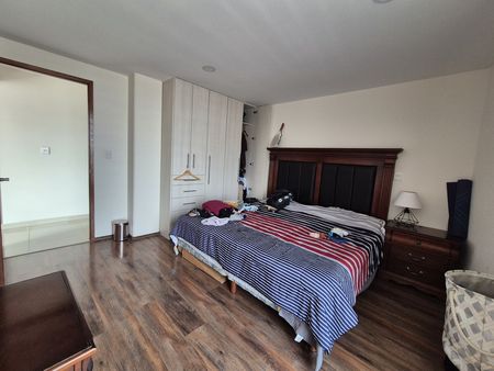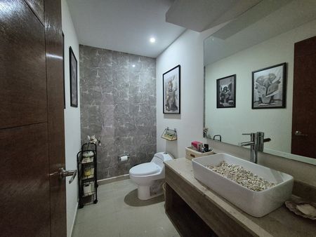 Distribución: Sala con terraza, comedor, cocina equipada, medio baño, recámara principal con vestidor y baño, recámara secundaria con baño completo, cuarto de lavado y cuarto de servicio con baño.