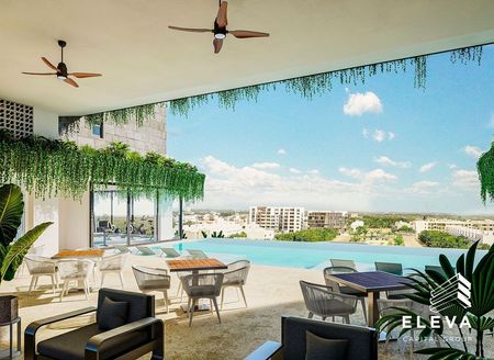 Alberca infinity, asoleaderos, fitness room, coworking, cctv, elevadores, estacionamiento techado, doble caseta de seguridad, ciclopista y accesos automatizados.