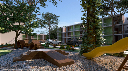 Ubicado en Correa Racho, Mérida Yucatán, el proyecto se divide en un zona privada condominal y otra de libre acceso,