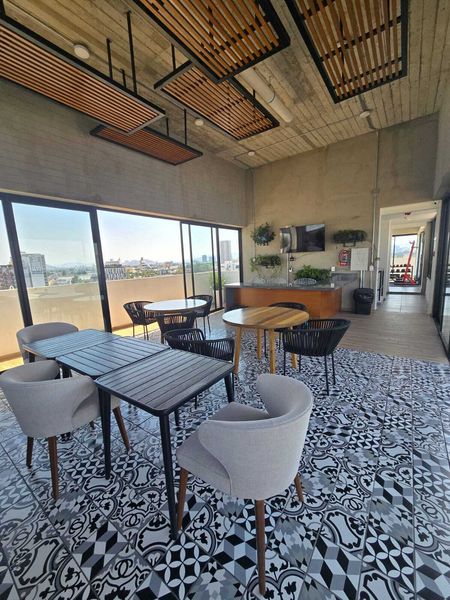 La torre cuenta con diferentes amenidades panorámicas, con una hermosa vista 360° a toda la zona, gimnasio, terraza con asadores, cine al aire libre con fire pit y un hermoso bar para reuniones, además de acceso controlado, seguridad 24/7 y dos elevadores.