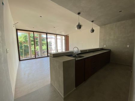 Yeso en interiores, pasta tipo concreto pulido, Cancelería Premium tipo madera línea Europea, Pisos de Porcelanato rectificado piedra romana marca Firenze 60x60.