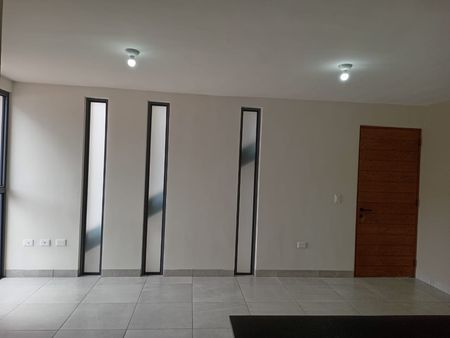 Tiene 2 recámaras la principal con baño completo, cada una con closet, espacio flex (sala de TV o estudio), cocina equipada, área de lavado cerrada, baño completo que da servicio a la recámara secundaria y a visitas, amplia estancia, 1 lugar de estacionamiento y patio.