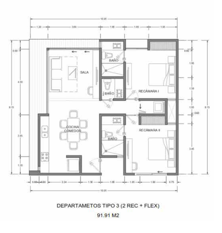 • Área Habitable: 91.91 m2