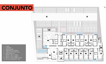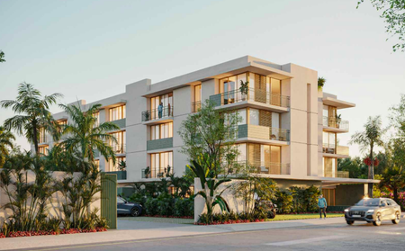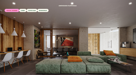 Exclusivo conjunto de 53 departamentos y estudios diseñados con un entorno verde y fresco para fomentar encuentros, desconectarte del bullicio de la ciudad y conectarte con la tranquilidad de la naturaleza.