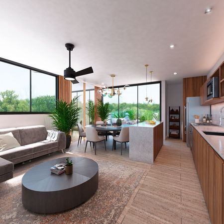 Departamento en exclusivo complejo departamental dentro del periférico de cinco niveles, ubicado en la mejor zona de la ciudad: la zona norte de Mérida, a unas calles de Prolongación Paseo de Montejo.
