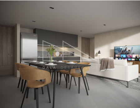 Departamento en venta en exclusivo desarrollo de alta calidad constructiva, ideal para vivir o invertir. Con una sólida estructura de vigas de acero, diseño minimalista, muros decorados con arte, y un rooftop común para disfrutar del entorno urbano.