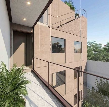 El diseño del desarrollo respeta el contexto y la escala de la colonia, ofreciendo un 50% más de áreas libres de lo exigido por la norma, para garantizar la prioridad al espacio exterior y el bienestar de los habitantes. La construcción, distribuida en cuatro volúmenes, incluye dos formas piramidales que aseguran que cada departamento cuente con un área abierta privada, ya sea terraza, patio interno o roof garden.