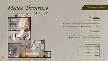• 1 recámara principal (con opción a estudio/closet vestidor)