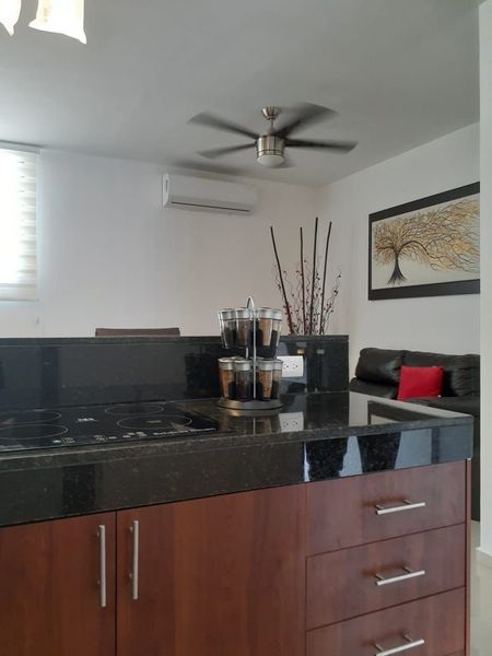 El departamento esta totalmente amueblado y equipado (a/a inverter, ventiladores, calentador, cortinas, etc)