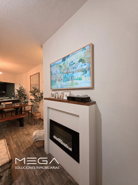 Ubicado en el primer nivel, interior, con cerradura digital marca Samsung, sala comedor, y cuenta con una chimenea electrica. 2 recamaras, balcón en la recamará principal, 1 baño completo recién remodelado , Cocina integral con horno electrico y campana de cocina (ambos nuevos), área de lavado, un estacionamiento en batería.