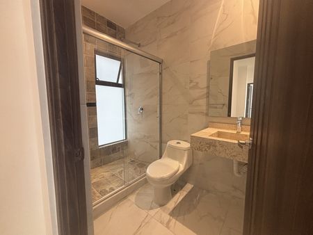 Se encuentra en el primer piso, cuenta con sala, comedor, cocina integral equipada, cuarto de lavado, 3 recamaras, la principal con vestidor, baño completo y balcón, las secundarias con closet y comparten baño, baño de visitas.