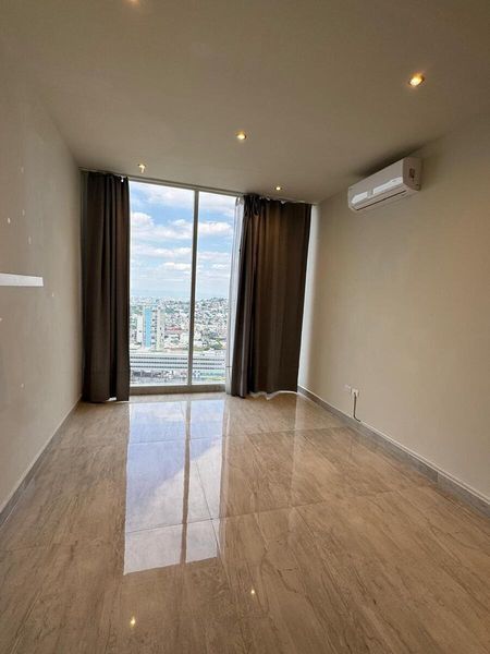 Departamento en renta, espectacular, totalmente equipado y de muy amplios espacios, vistas , en piso 12, con hermosas vistas a la ciudad, minisplit en todas las areas, cocina con parrilla, horno y microondas, refrigerador, persianas, con ventanales de piso a techo , 2 recamaras con baño, , area de sala-comedor, baño de visitas, cuarto de lavanderia con centro de lavado , iluminacion led, costo de renta incluye el mantenimiento
