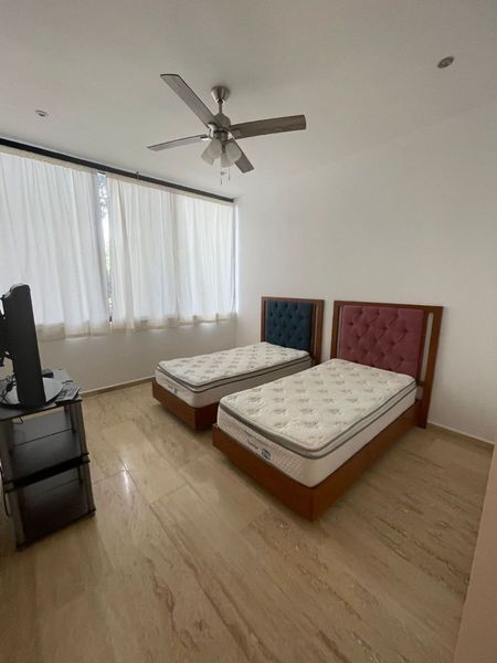 Sala, comedor, cocina equipada, area de lavado con centro de lavado incluido, dos camas individuales,