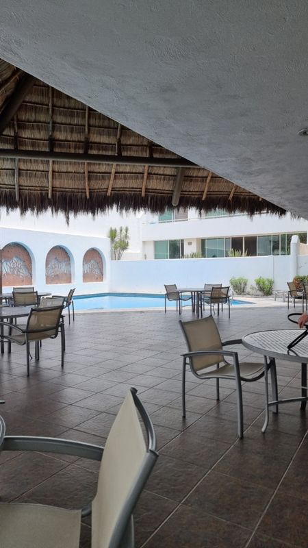 Una sola planta la cual consta de area para Sala comedor de muy buen tamaño con acceso a una linda terraza la cual a su vez nos da acceso a las áreas comunes con una cascada y lago y alberca con terraza techada con baños.