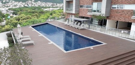 El departamento se encuentra en el piso 8 y tiene cocina equipada con estufa y campana y cubierta de Corian, mueble de alacena, sala – comedor con salida a balcón con linda vista a la alberca y a la cd de Monterrey.