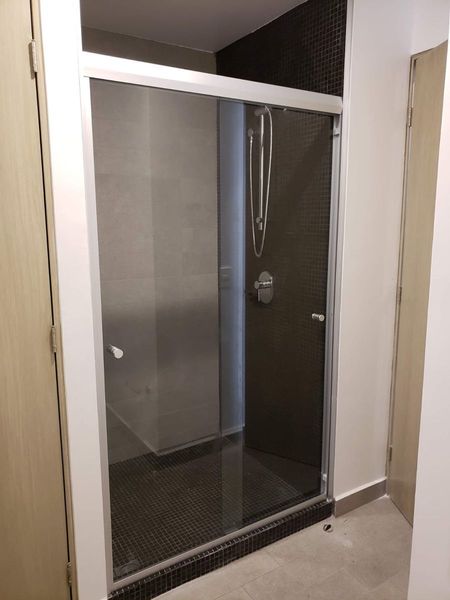 Amplia recámara con walking closet y baño completo con cancel de cristal.