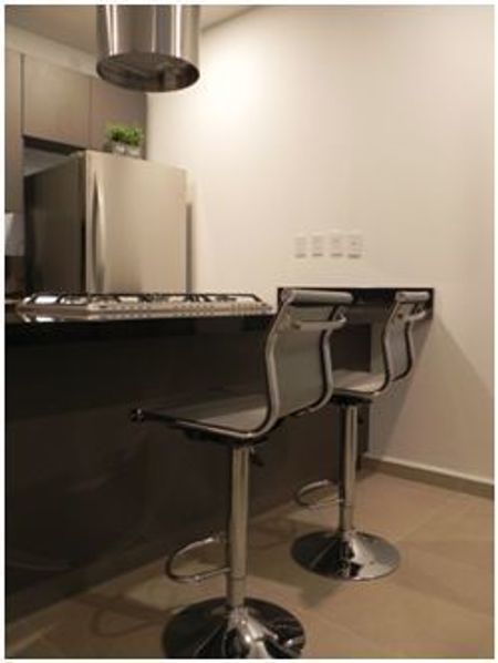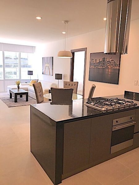 sala (incluye un sofa-cama matrimonial), comedor, cocina abierta, cuarto de lavado y 2 cajones de estacionamiento.